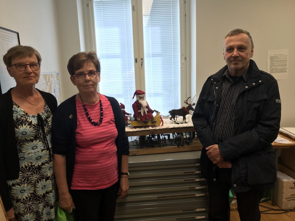 Kuvassa Kyösti ja Anni Tammelinin lapsista Irja ja Hanna sekä Mairen jälkeläisistä Pekka. Kiitokset yllättävästä ”joululahjasta” kaikille luovuttajille ja myös korjoustyön tehneelle Jaakko Korhoselle.